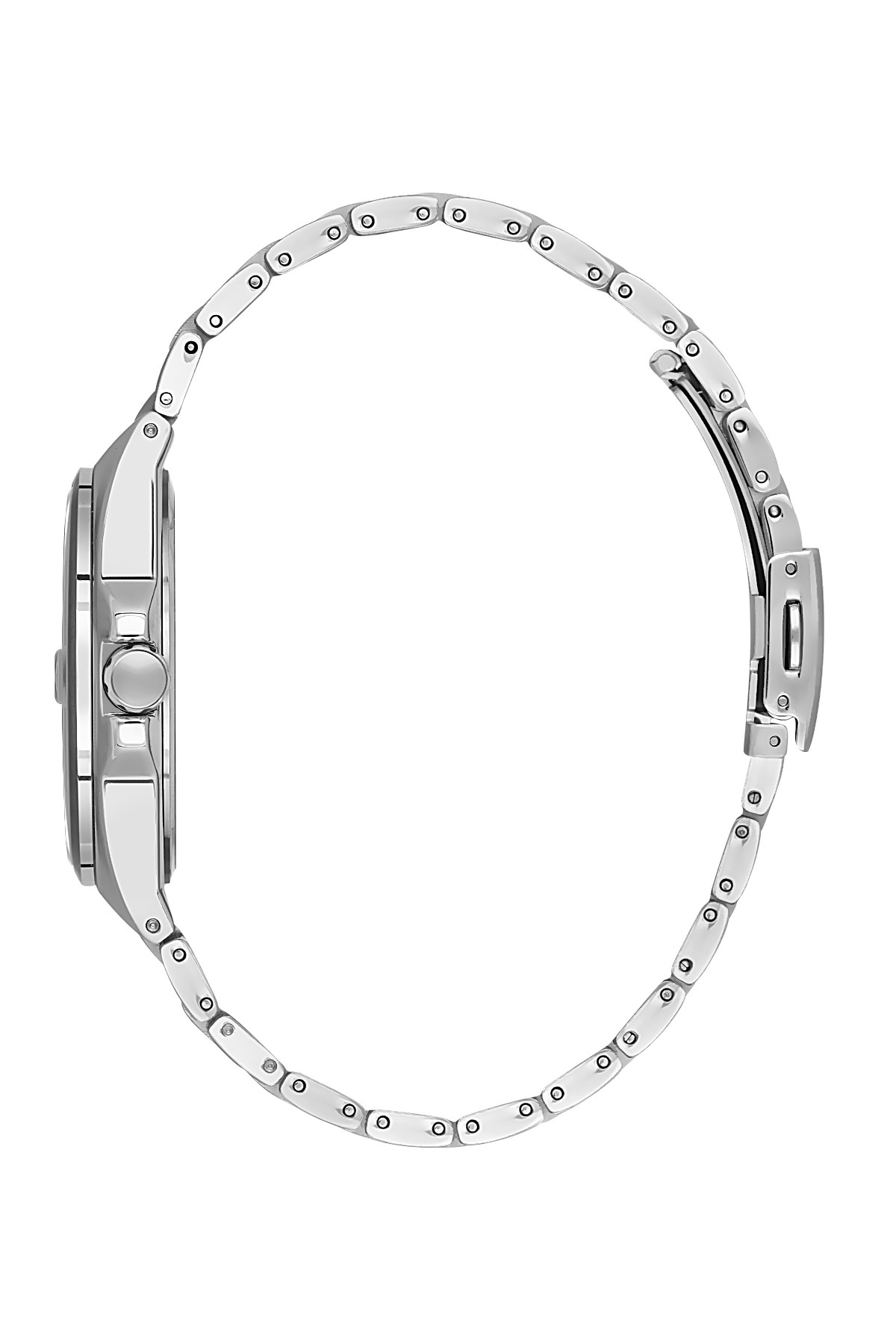 Особого внимания заслуживает браслет. Он выполнен из нержавеющей стали, также покрытой защитным IP-слоем. Серебристый браслет оснащен удобной застежкой на кнопках, что обеспечивает надежную фиксацию на руке и простоту использования. Главное преимущество браслета – его можно уменьшить под любой размер запястья, добившись идеальной посадки.