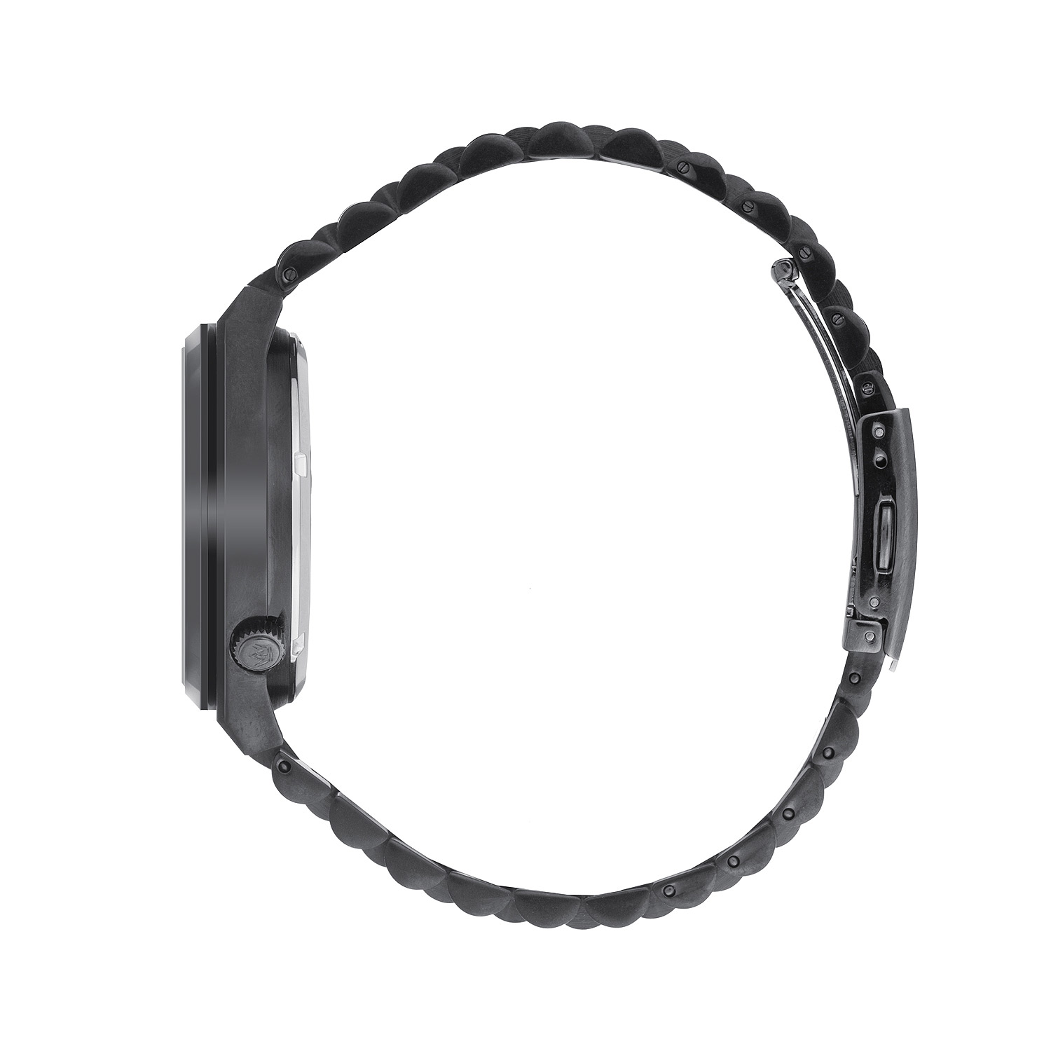 Дизайн часов выдержан в подчеркнуто мужественной цветовой гамме. Черный корпус и черный браслет с износостойким IP-покрытием выглядят брутально и современно. Покрытие не только придает глубокий матовый оттенок, но и надежно защищает сталь от царапин и потертостей. На этом глубоком черном фоне особенно эффектно выделяются риски и стрелки, выполненные в цвете желтого золота. Благодаря такому контрасту, считать показания легко даже при ярком солнечном свете или в сумерках.