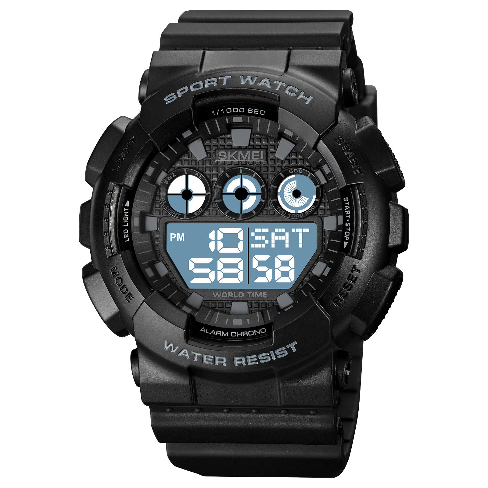 таймер обратного отсчета,12/24 формат,будильник,двойное время,секундомер,мировое время,дата, неделя