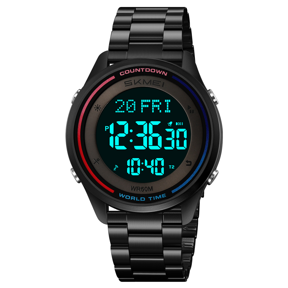 таймер обратного отсчета,12/24 формат,будильник,двойное время,секундомер,мировое время,дата, неделя